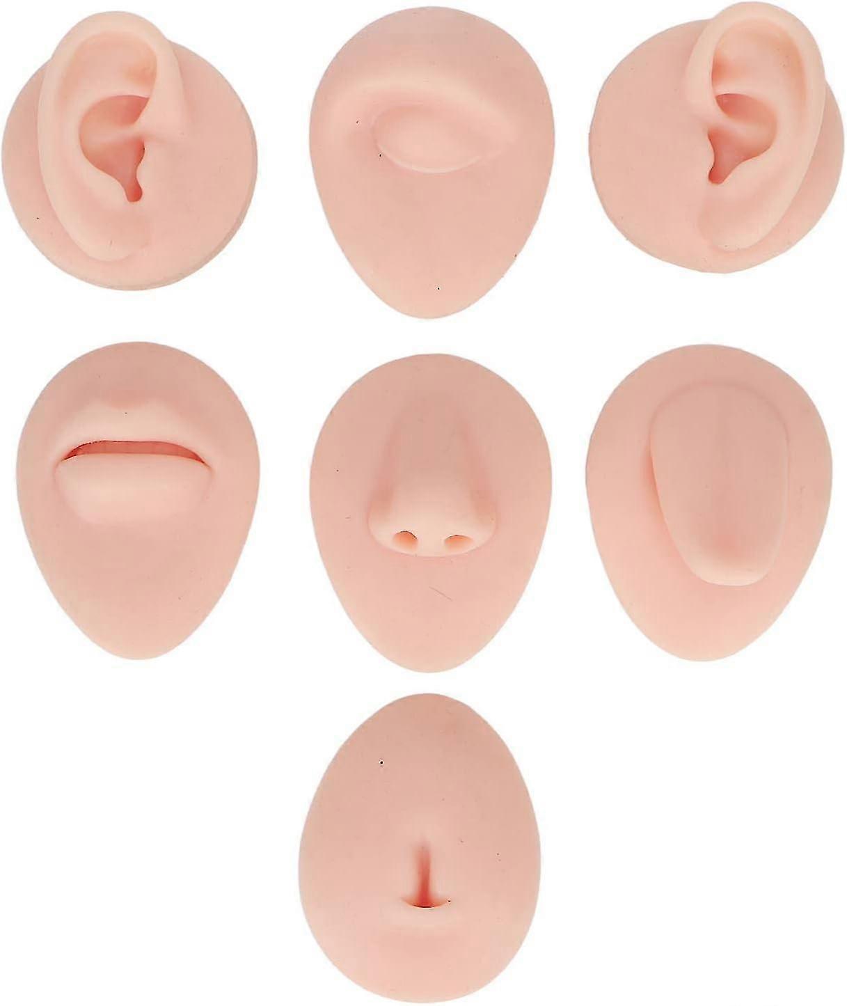 7PCS Piercing Practice Body Parts, Fake Body Parts, Soft Silicone Ear Mouth Nose Eye Tongue Navel Model (Light Skin Color)