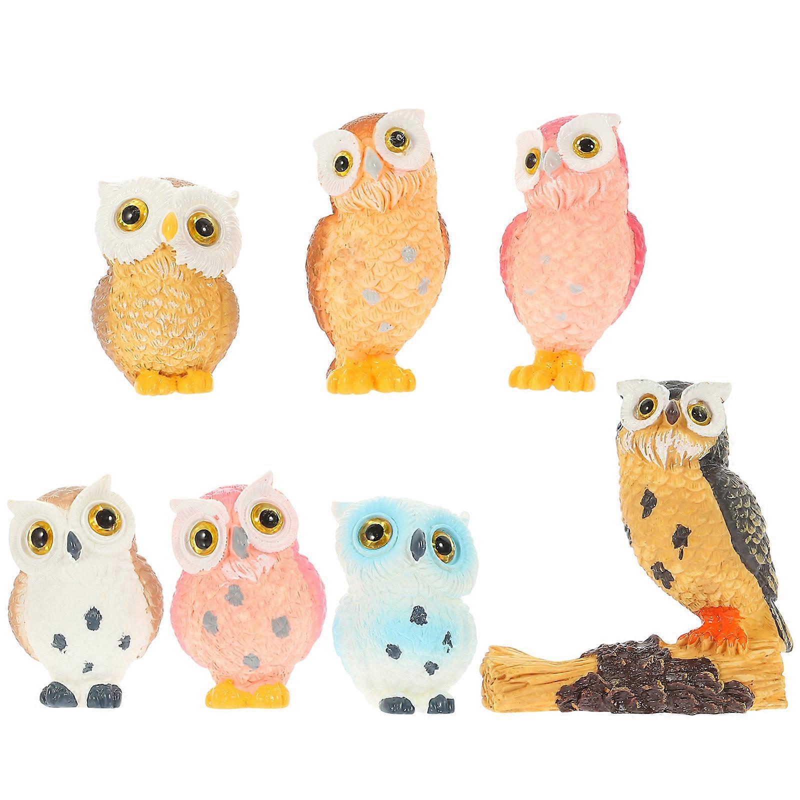 7pcs Miniature Owl Ornaments Miniature Owl Figurines Cute Owl Figures Micro-landscape Decoration
