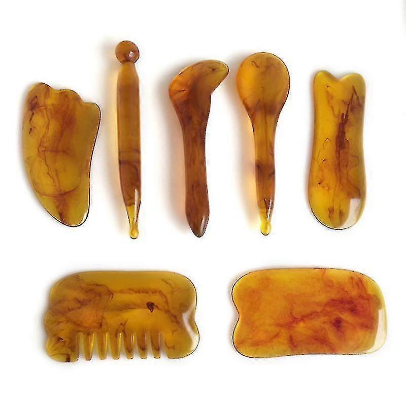 7pcs Natural Resin Amber Massage Scraping For Face Neck Gua Sha Scraper Therapy