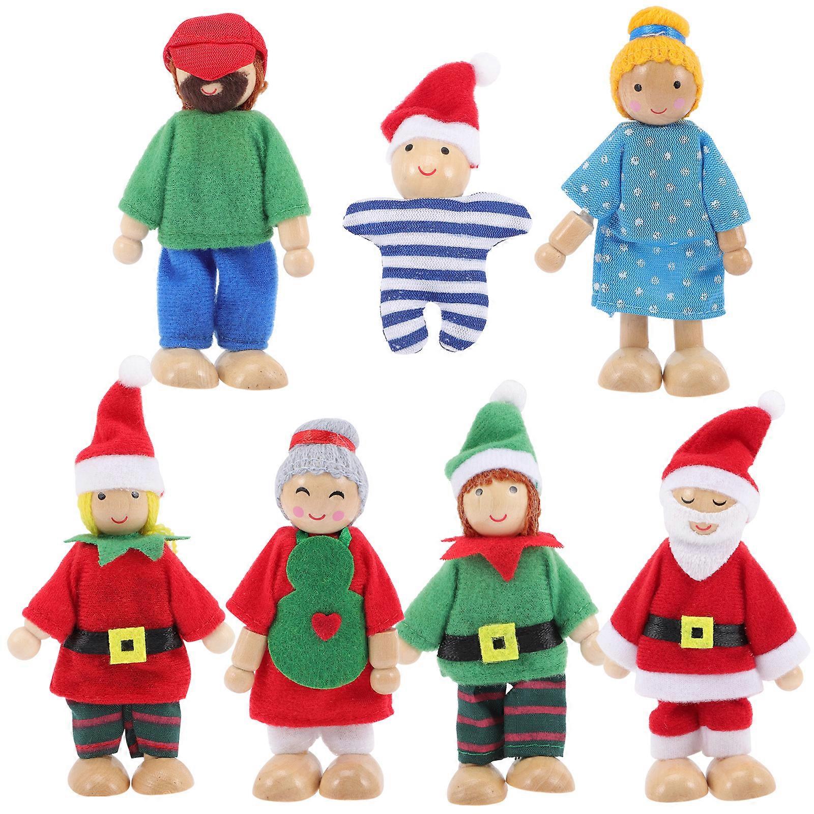 7pcs Wooden Family Doll Toy Play House Dolls Playset Kids Pretend Toy Mini Doll