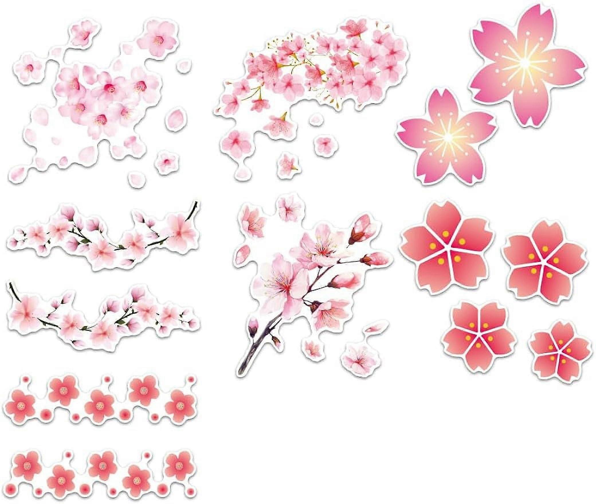 7pcs Cherry Blossoms Car Decal Set Waterproof Cherry Blossoms Decals for Vehicle Decoration Reflective March Cherry Blossom Stickers