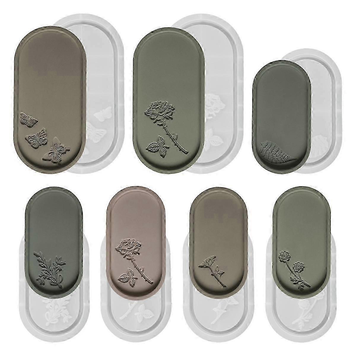 7PCS Oval Storage Tray Cement Silicone Mold DIY Rose Flower Butterfly Carving Coaster Mold Resin Concrete Plaster Mould