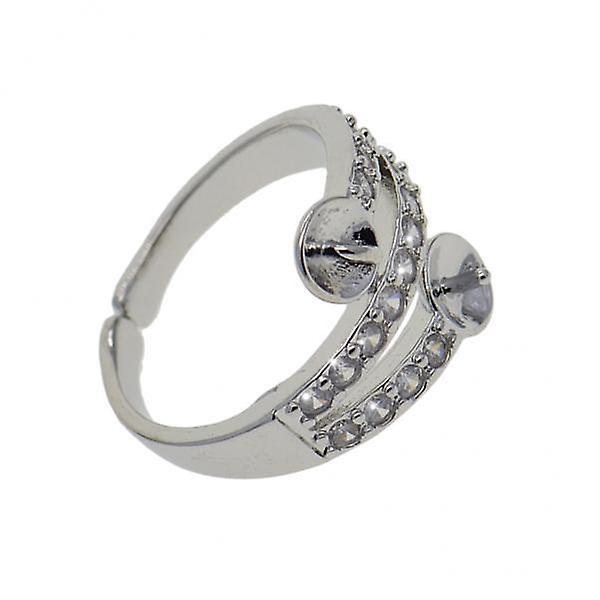 7x1 Piece Ring Platinum Plated Rhinestone with 2 Blank Pearl Base Wedding Ring