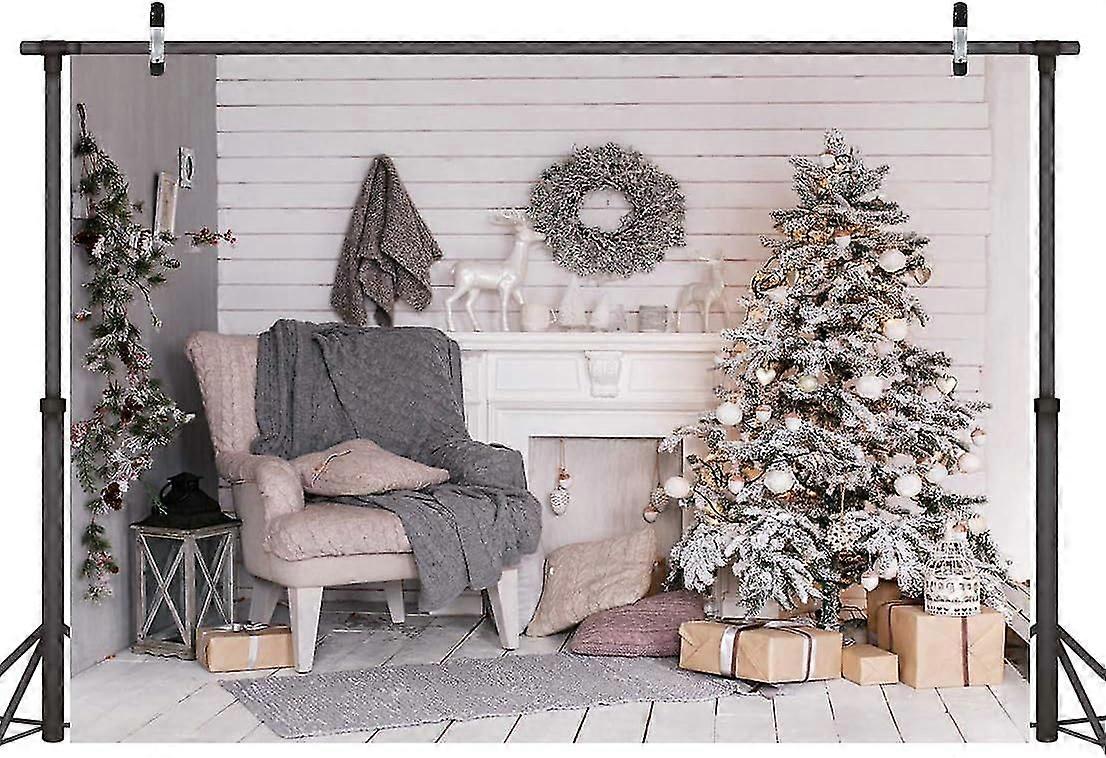 7x5FT Merry Christmas Christmas Tree Gift Backdrop White Warm Sta