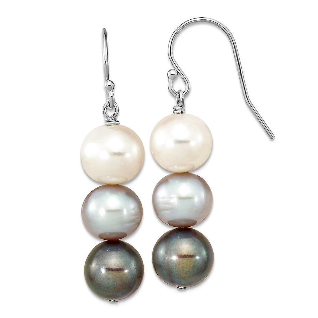 8 To 9mm 925 Sterling Silver Rhodium Plated Black White Grey Freshwater Cultured Pearl Dangle Earrings 35.6mm long-Dangl