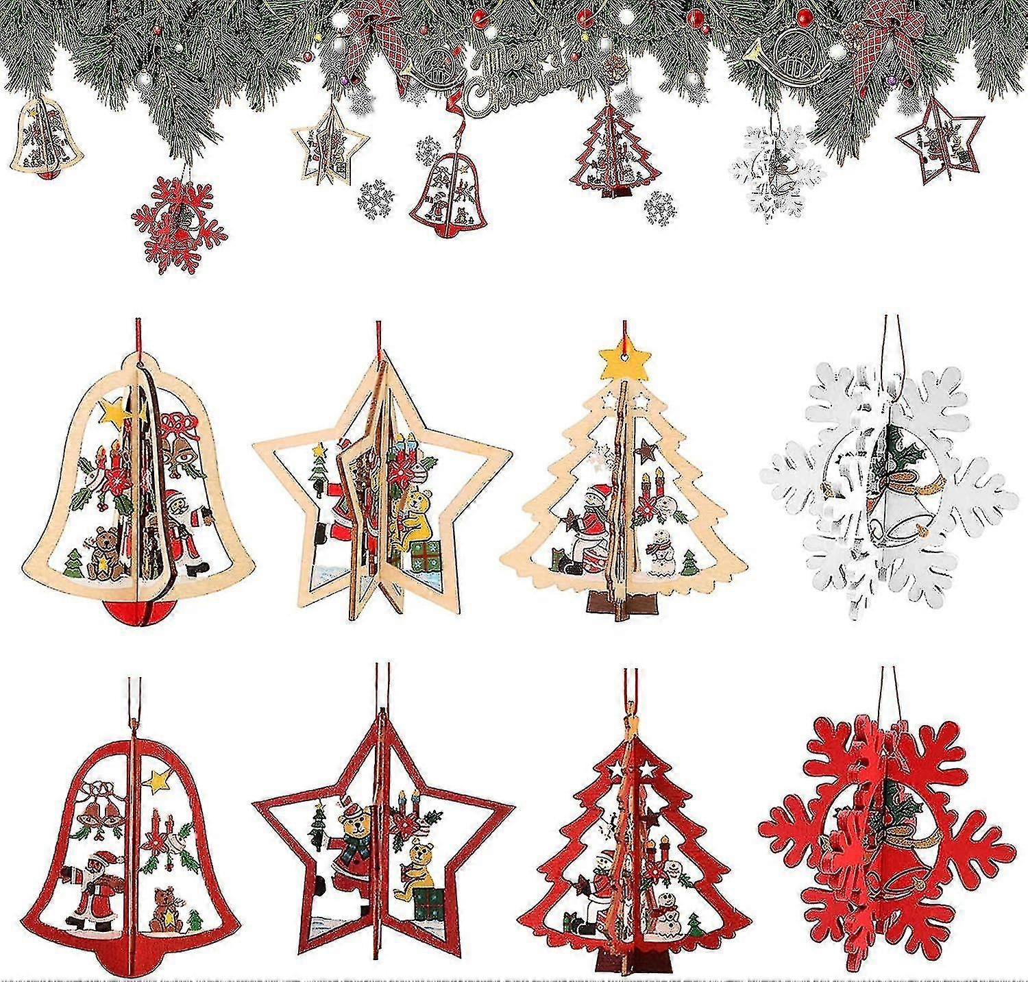 Set Of 8 Small Wooden Christmas Pendants - 3d Christmas Tree Ornaments - Wood Decoration For Christmas Tree - Festive Wooden Christmas Decor Pendants