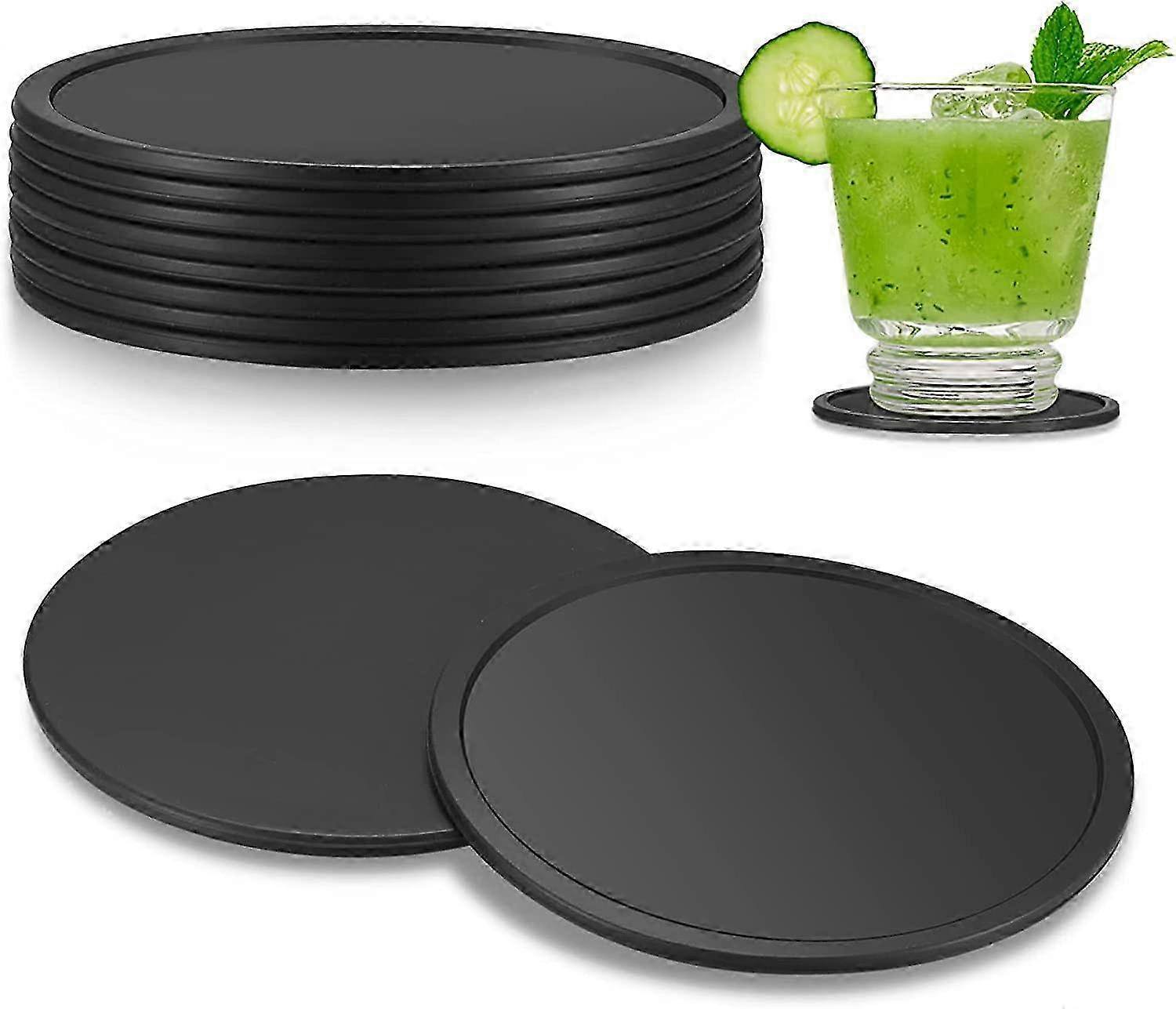 8 Black Silicone Drink Coasters, Non-Slip Round Mug Pads for Home & Bar
