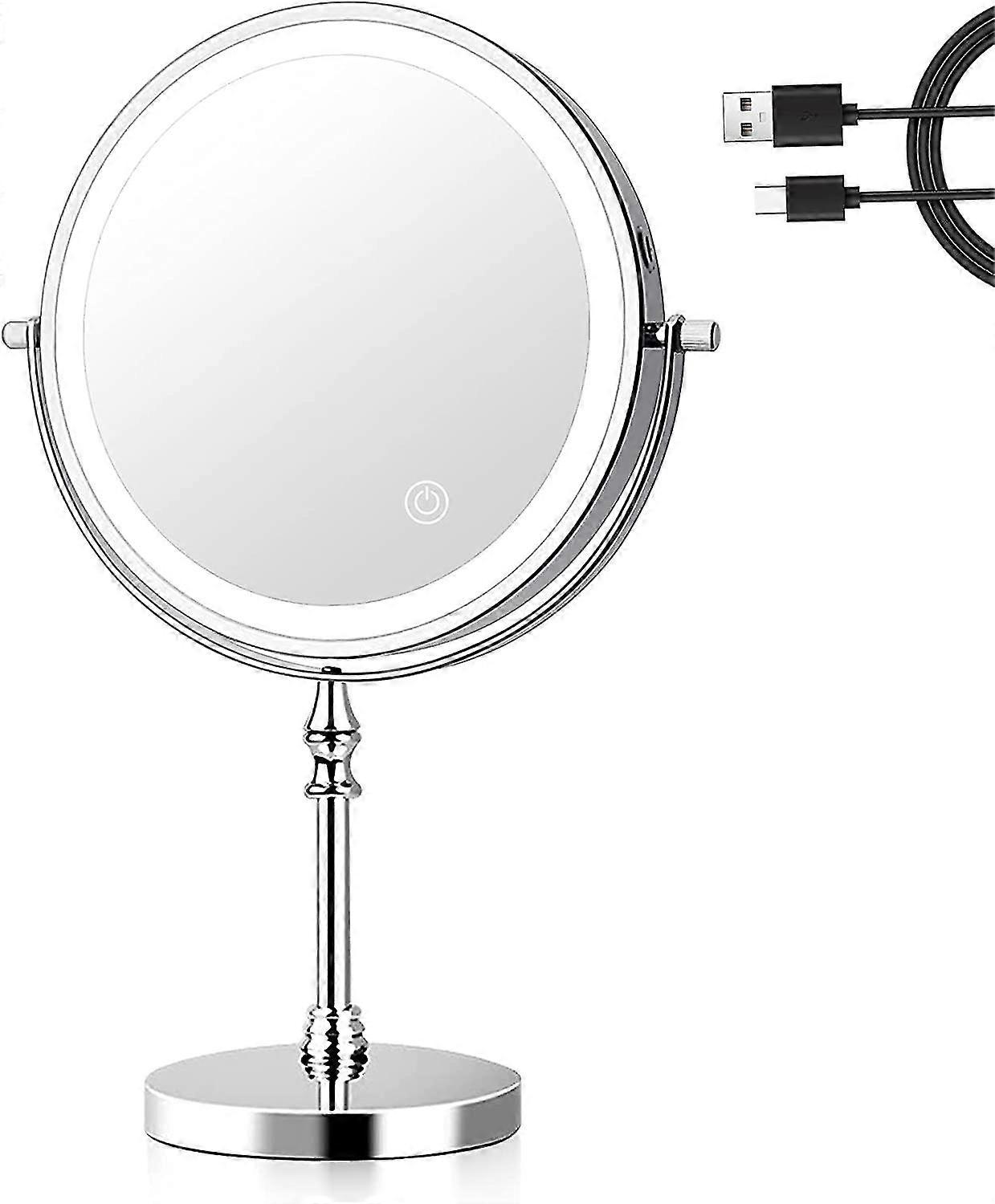 8 Inch Magnifying Makeup Mirror, Led Lighted Makeup Mirror, 1x/10x Magnification Usb Charger, 360