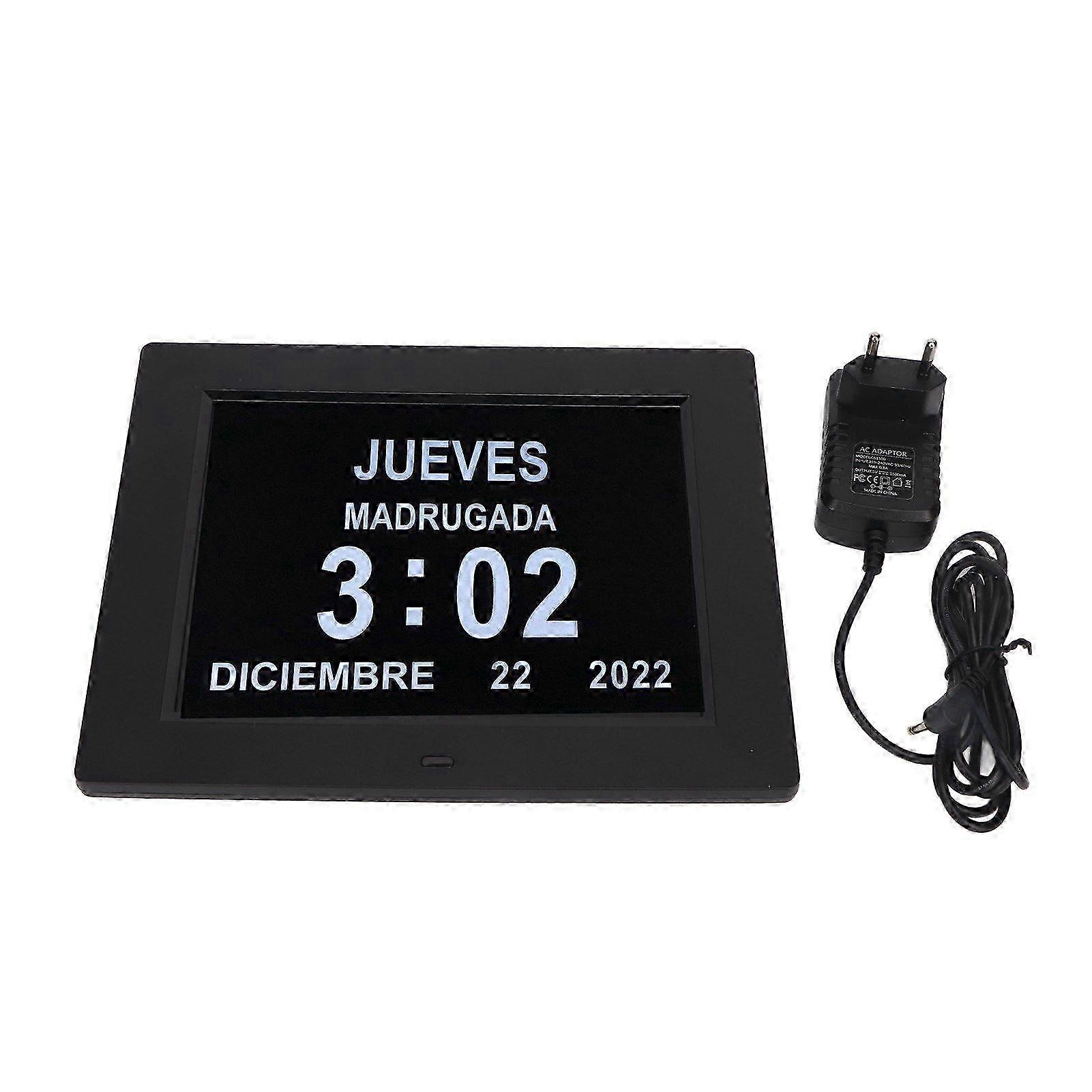 8 Inch Digital Day Calendar Clock Auto Dimming Take Medicine Reminder Electronic Calendar Alarm Day Clock 110240V Black EU Plug