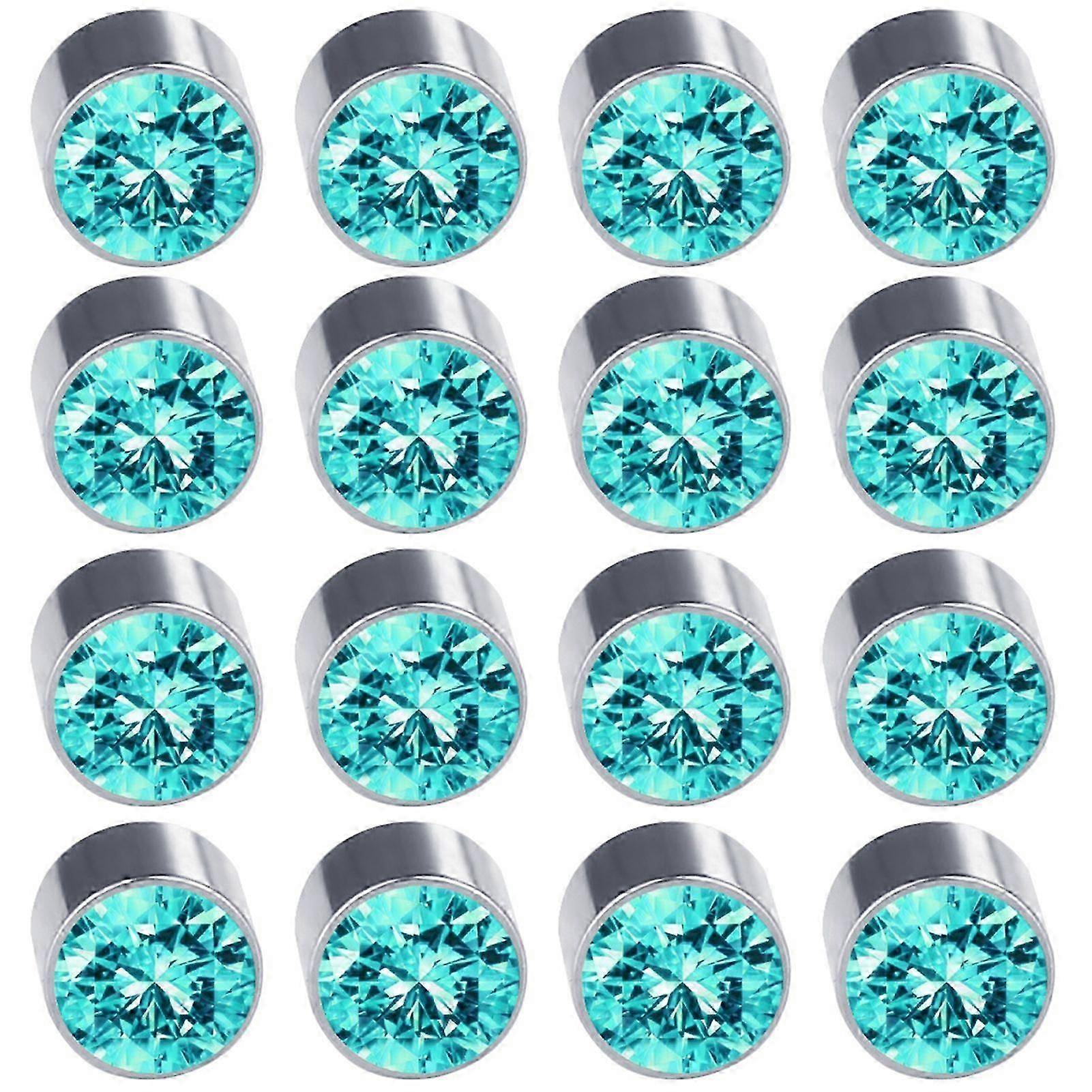 8 Stud Earrings - 6mm Cz Earrings Clip-on Septum Jewelry, Non-pierced Cuffs Earrings For Men Women Lake Blue