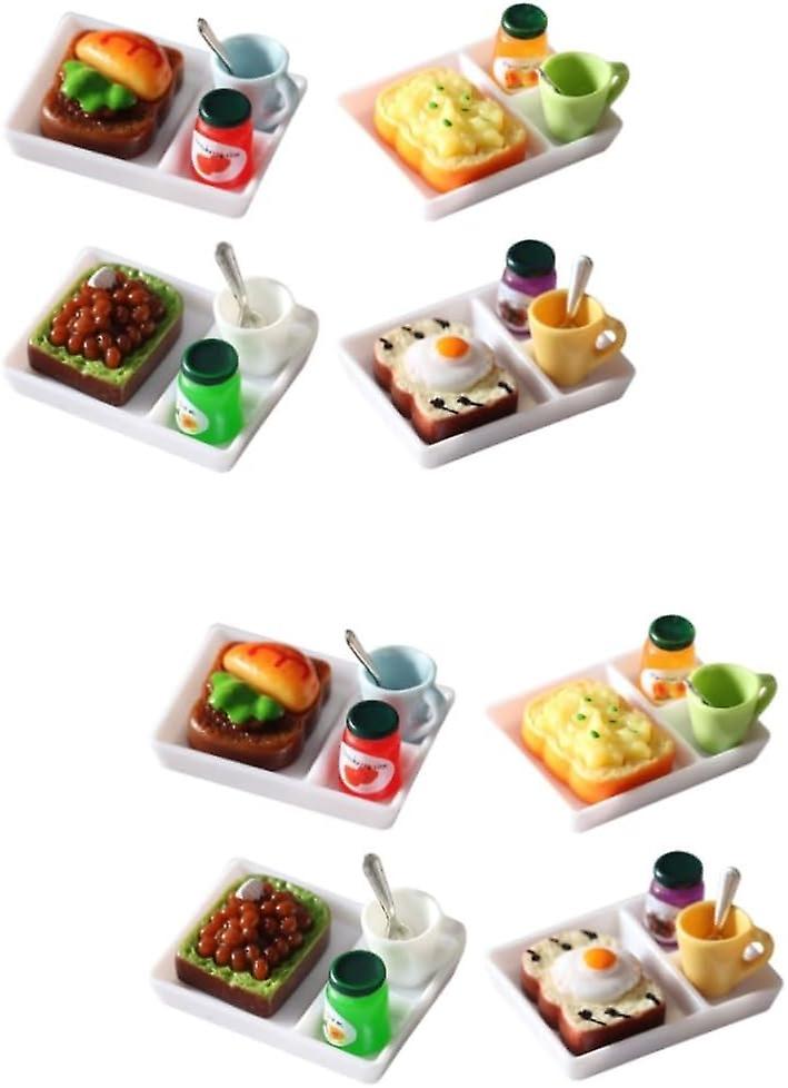 8 Sets Props Toast Tableware Prop Doll House Simulation Play Miniature Mini Pretend Toys Breakfast Accessories Emulation Model Kitchen Food Scene Plat