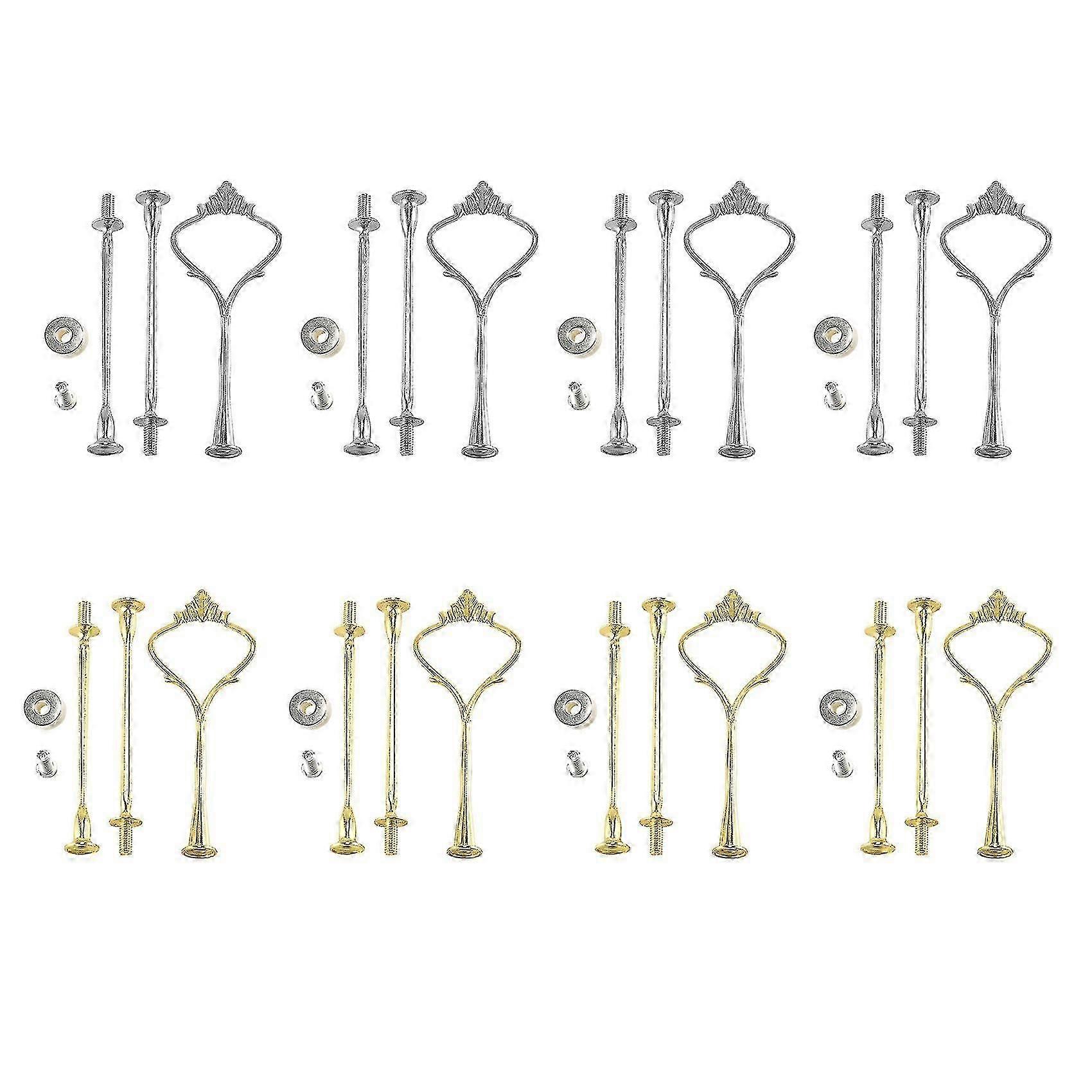 8 Sets 3 Tier Crown Cake Plate Stand Fittings Hardware Holder Kitchen Gadgets for Wedding and Party - Silver&Golden