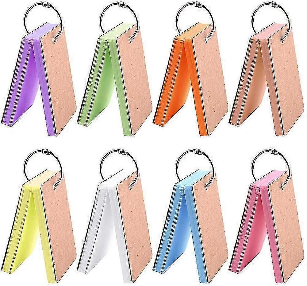 Package includes: 8 sets index cards in 8 different colors, 50 sheets for every color, 400 pages in total Size: 5.5 * 9 cm/ 2.2 * 3.5 inches, proper size for you carrying . Binder ring: comes with 8 pieces stainless steel bender rings, which are easy to install and keep them together, convenient to hang or take down the cards . 8 Different colors: white, pink, purple, blue, yellow, green, brown, orange, you can make special mark according to their different colors, easily sort cards by subject or class . Wide application: these flip index cards are good for taking notes, studying or working, you can apply them at home, school, office or any other places . Notepad memo scratch pads for outdoor activities recording and tactical pocket .