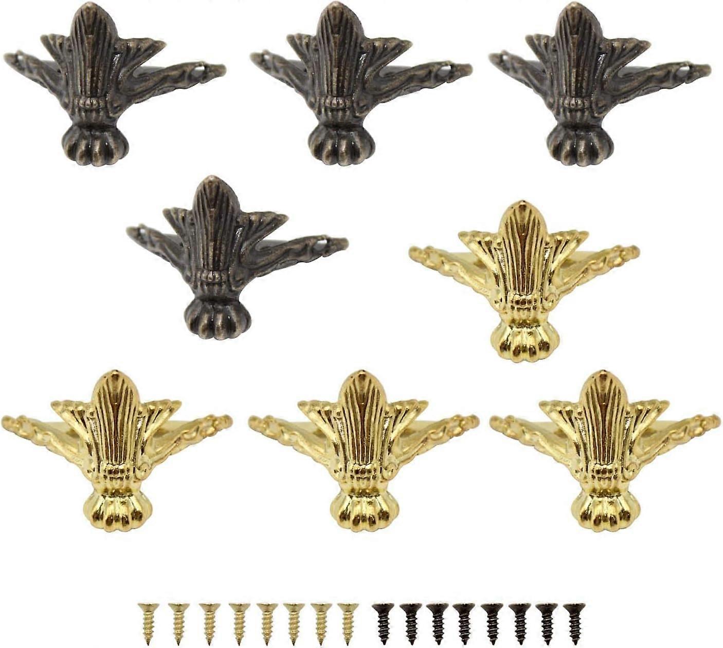 8-Pack Antique Wooden Box Legs Table Leg Corner Guards Decorative Feet and Leg Corner Guards Set for Storage Box Table Legs (Gold, Bronze)