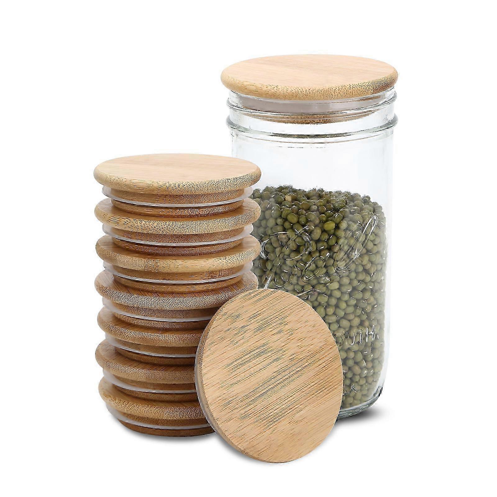 8-Pack Mason Jar Lids with Acacia Wood & Silicone Seals, Wide Mouth for Sealing