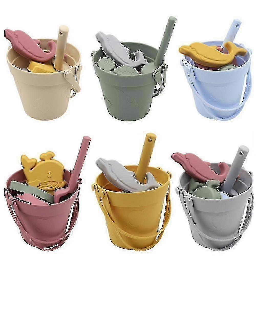 8 Piece Silicone Beach Toys Children Summer with Silicone Bucket, Shovel, and Sand Molds