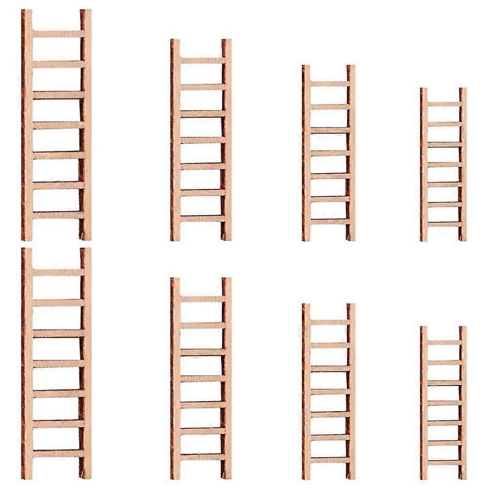 8pcs Dollhouse Mini Wooden Step Ladder Micro Landscape Garden Ladder Furniture Miniature Ladder