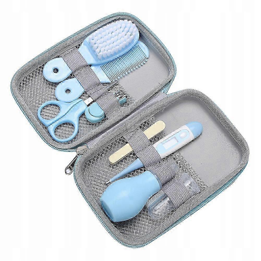 The necessary 8 baby care tools will meet your needs. Comes with a baby brush, hair comb, nail clipper, nail file, scissors, nose cleanser, thermometer and a finger toothbrush. Details designed specifically for the comfort and safety of the child. It's easy to keep your love healthy and comfortable. The set includes a durable case, so parents can conveniently keep any item at hand, whether they are at home or on the go. Functions: 1. 8 essential baby care tools to meet your needs. Comes with a baby brush, hair comb, nail clipper, nail file, scissors, nose cleanser, thermometer and a finger toothbrush. 2. The round head scissors, small size nail clipper and nail file are designed for babies and children to prevent accidental injuries. 3. The soft nasal cleaner ensures that the nose is cleaned without discomfort to the baby. 4 . The baby hair comb and brush help to massage the head and style the baby's hair nicely. The hairbrush has soft bristles to reduce pulling, and the non-scratch baby comb is soft and gentle for your baby's comfort. 5 . The digital thermometer is designed for easy and accurate temperature reading. 6. A toothbrush with soft silicone fingertips will not damage your child's teeth and gums while cleaning them. 7. A durable storage case is included so that parents can conveniently keep any item at hand, whether they are at home or on the go. 8. A great gift for new or experienced parents. Specification : Item Type: Baby Care Kit Material: plastic silicone Optional Color: Pink, Yellow, Blue Weight : approx. 206g / 7.3oz Thermometer battery: 1 x CR2032 (included) Package List: 1 x brush 1 x hair comb 1 x thermometer 1 x scissors 1 x nail clipper 1 x nail file 1 x Finger Toothbrush 1 x nasal cleanser Please be aware: