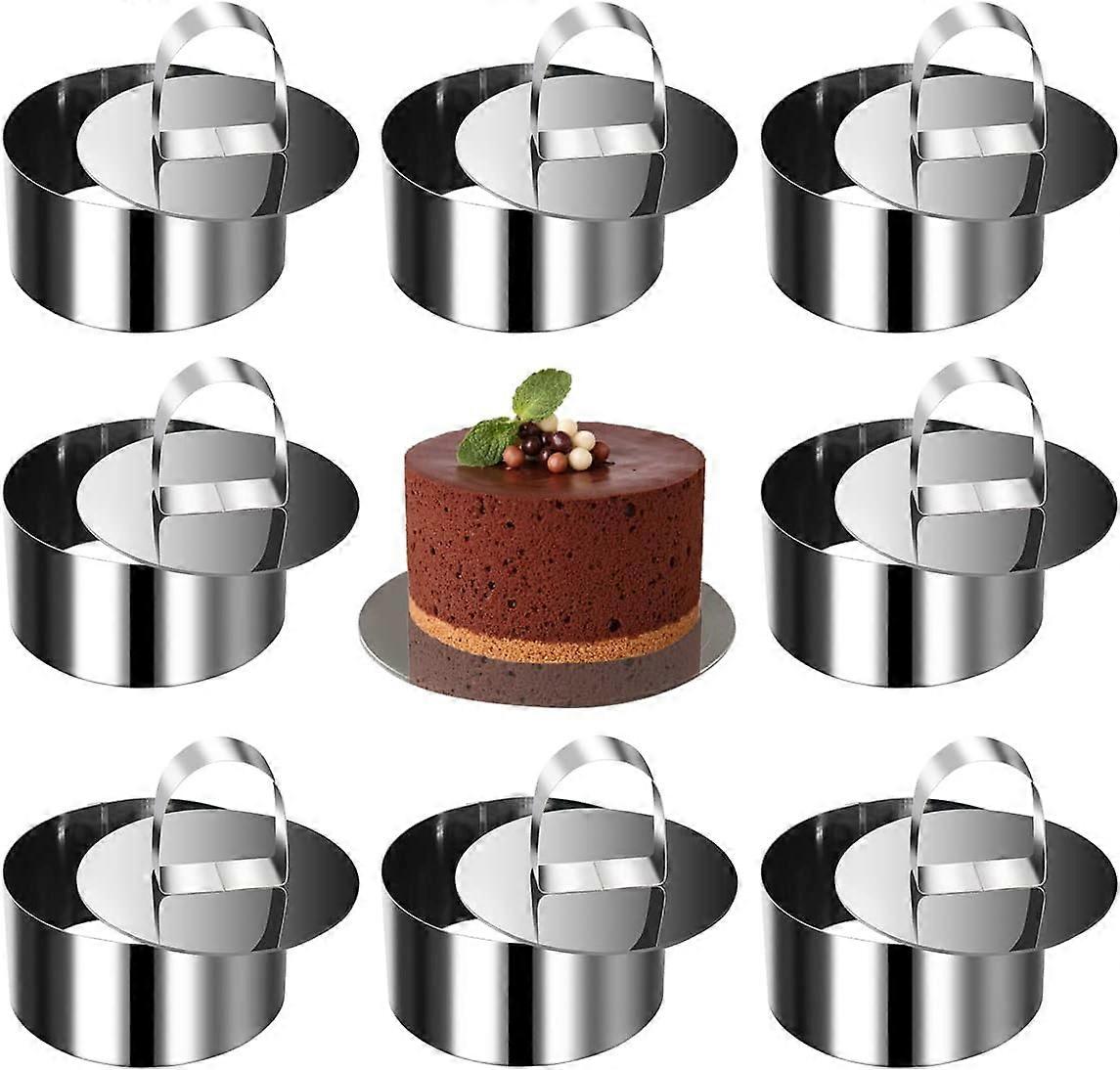 8 Pieces Round Food Rings,Cooking Rings Set,Stainless Steel Cake Circle Set,Round Food Baking Ring,with Pusher,for Family Cooking Eggs Pastry Mousse D