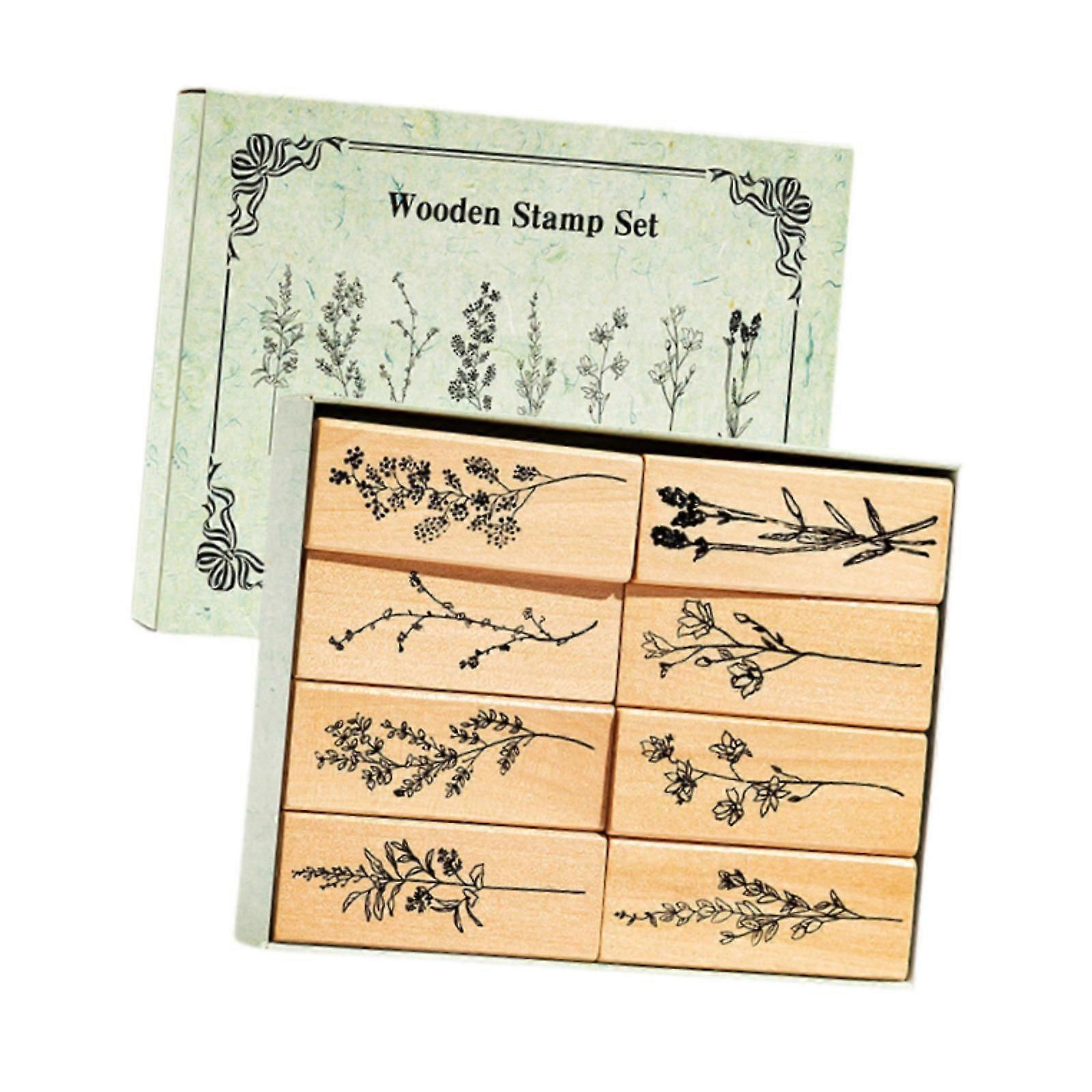 8 Pieces Wooden Rubber Stamps Art Crafts for Planner Card Making Photo Album