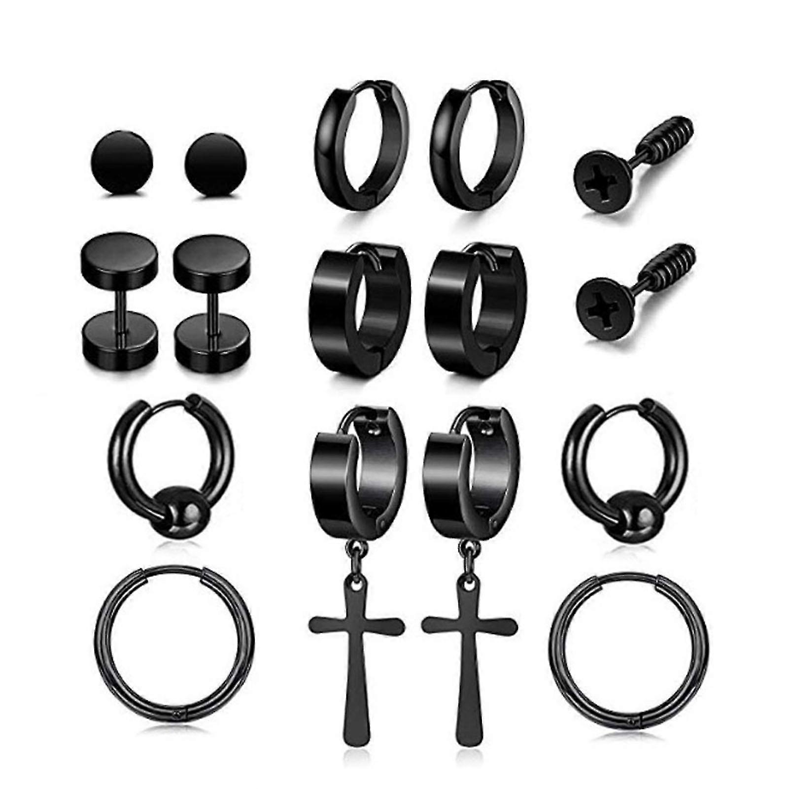 For 8 Pairs Earrings Set - Stainless Steel and Black Unique Cross Hoop Ear Studs for Men and Women, Fashionable and Durable