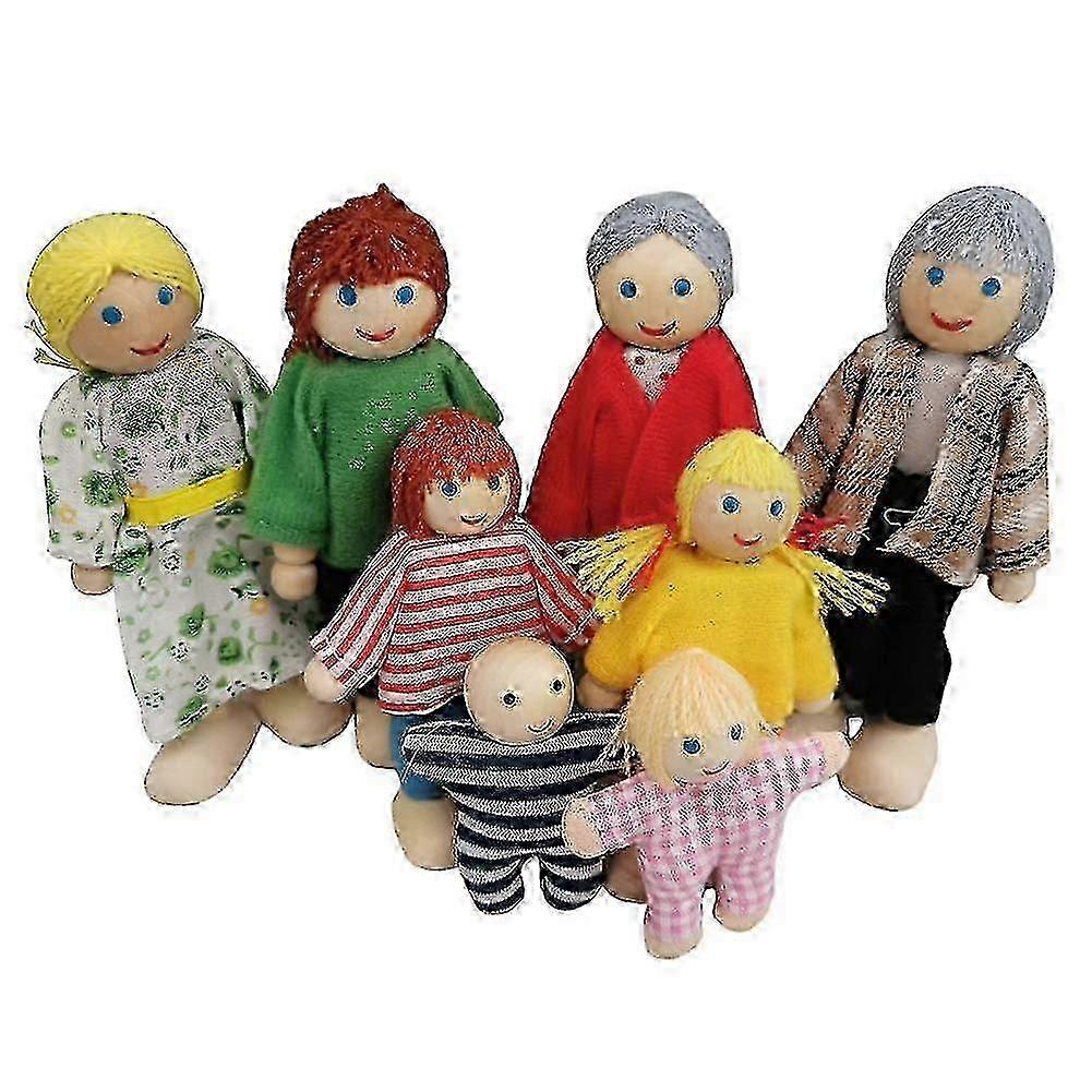 Wooden Doll House Family Of 8 Little Figures Cute Dollhouse People For Girls Toddlers Wooden Dollhouse Family Set Smooth Design