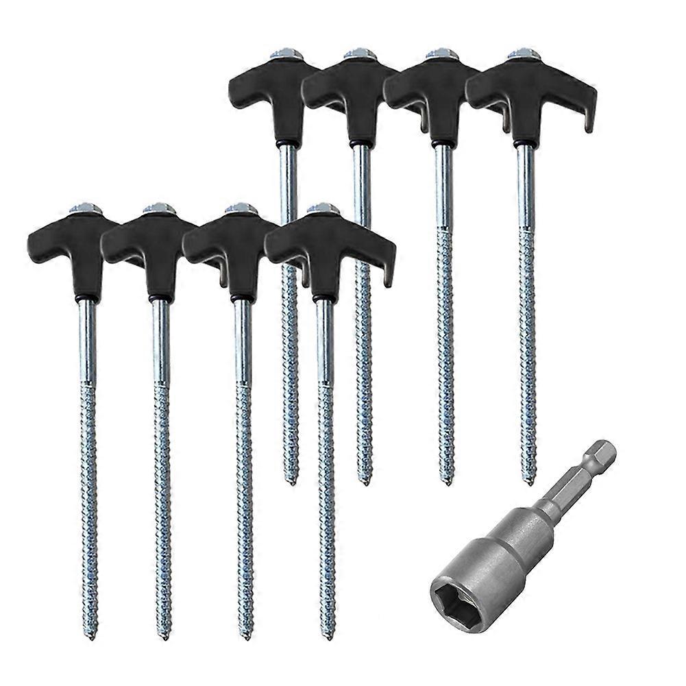8Pcs Screw in Tent Stakes with Hex Socket Heavy Duty Spiral Screw Tent Stakes Pegs Screw for Outdoor Camping Black