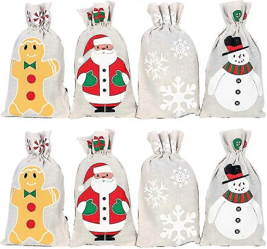 8 Pieces Gift Bags Christmas Jute Sack Santa Sack Advent Calendar Bag Small Jute Bag Candy Bags Santa Claus Sack Random