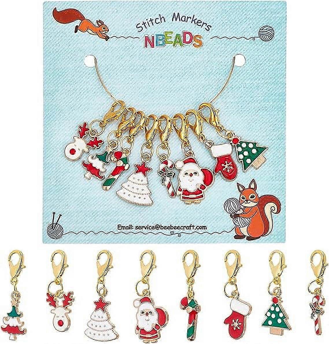 8 Pcs Christmas Theme Stitch Markers, 8 Styles Christmas Tree/Christmas Reindeer Alloy Enamel Crochet Stitch Marker Charms Locking Stitch Marker for K