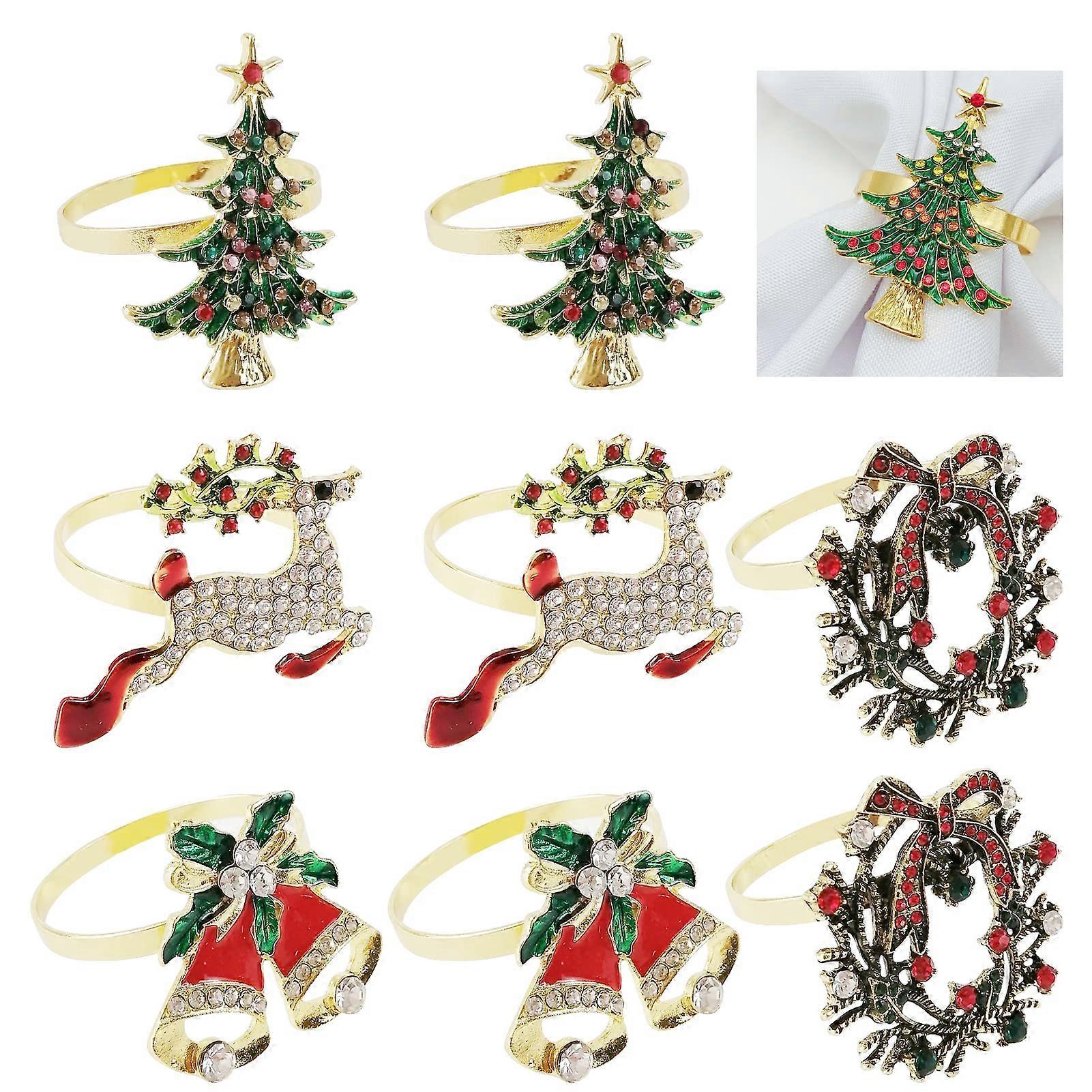 8 Pcs Christmas Napkin Rings Set,Christmas Tree Wreath Bells Elk Napkin Rings Holders for Christmas Wedding Receptions Home Kitchen Dinner Table Setti