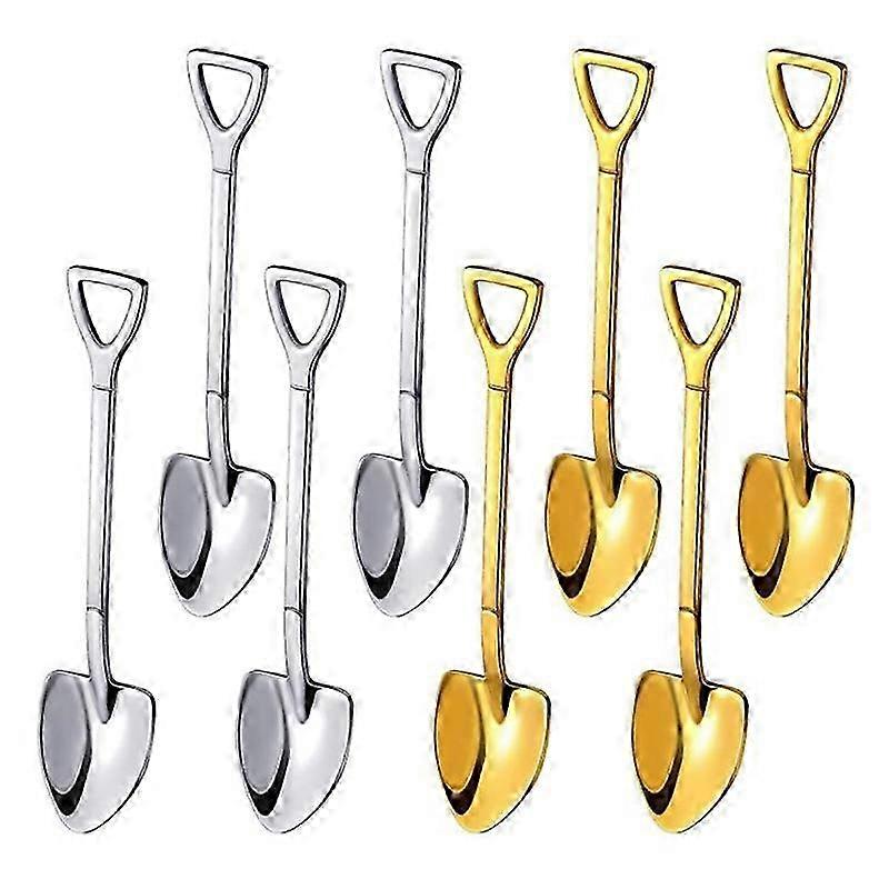 Enough quantity: you will get 8 pieces stainless steel shovel coffee spoons, 2 colors (silver and gold), each color has 4 pieces, sufficient quantity and colors to use or replace in different occasions, also good package will protect them from being scratched by external force during transportation