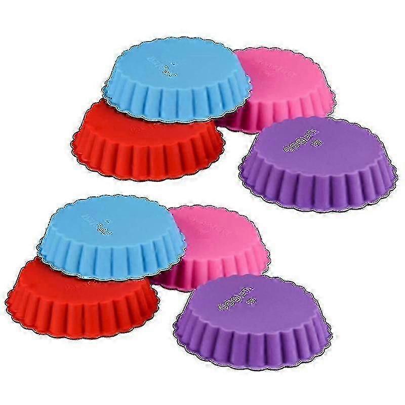 8 Pcs Non-Stick Silicone Round Fluted Baking Molds for Tart Quiche Muffin Cake Pan