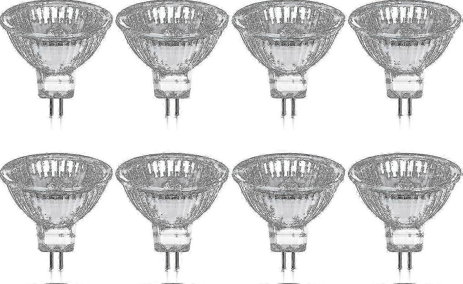 Pack Of 8 Halogen Bulbs Gu5.3 Mr16 35w 12v Dimmable - Warm White 2800k, 400 Lumens, Glass Cover Fi