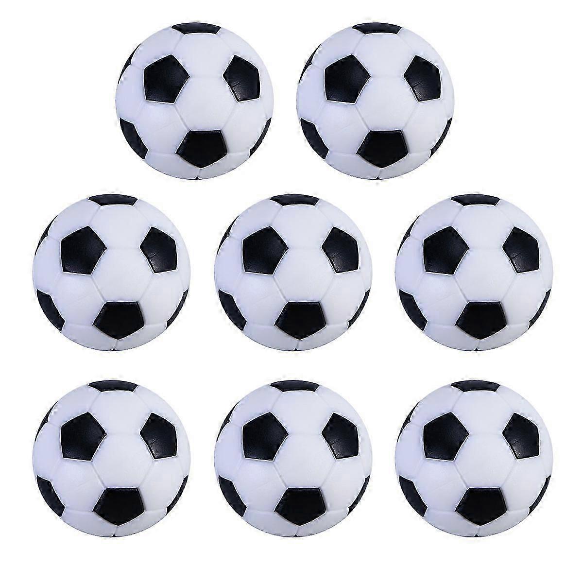 Each football measures 32mm in diameter and is intended for use on most standard sized foosball tables. Great for both casual and competitive foosballers who enjoy fast, intense games. Makes the perfect pastime activity for a rainy day at home or school recess playtime. Excellent size for most standard foosball table games. Features - Color: Black and White.- Material: Plastic.- Size: Approx. 3.2x3.2x3.2cm.- Made by plastic for continued use. for foosball table balls replacing.- With traditional soccer ball pattern, these footballs will provide you excellent game experience.- Increase the fun of the game and can be used as a great kid's toy.- This product is intended for use on most standard sized football tables.- Great for both casual and competitive footballers who enjoy fast, intense games.Packing list: 8 x tabletop soccer balls
