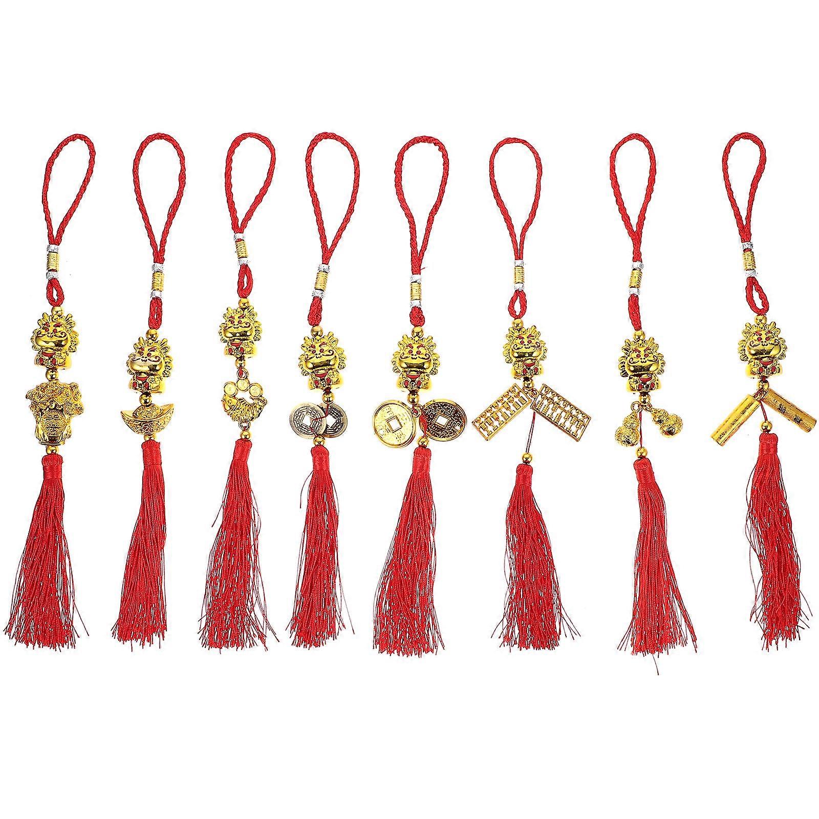 8pcs Chinese Dragon Year Pendant Hanging Ornaments for Home & Car Decoration – Feng Shui Lucky Tree Pendant, Traditional Zodiac Symbol, Festive Design