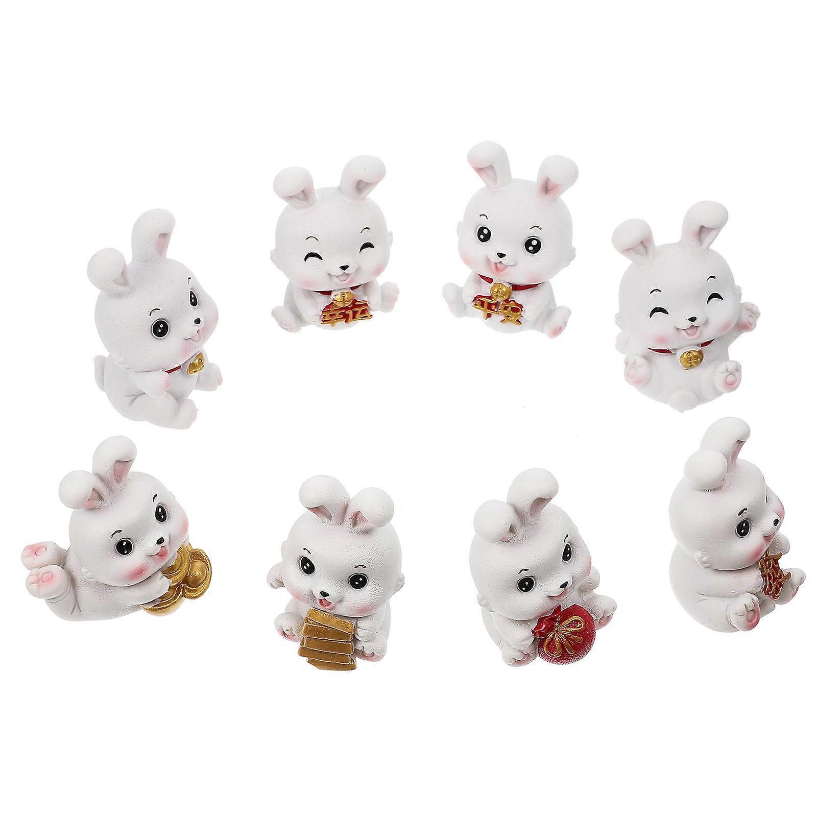 8Pcs Small Bunny Statues Decorative Cartoon Rabbit Decors Mini Bunny Figurines Desktop Decors