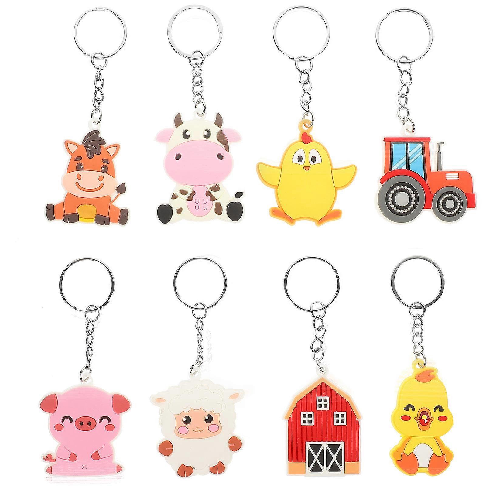 8pcs Adorable Cartoon Animal Keychains Farm Themed Bag Charms for Key Decoration, Ideal for Birthdays, Valentine's Day, and Christmas
