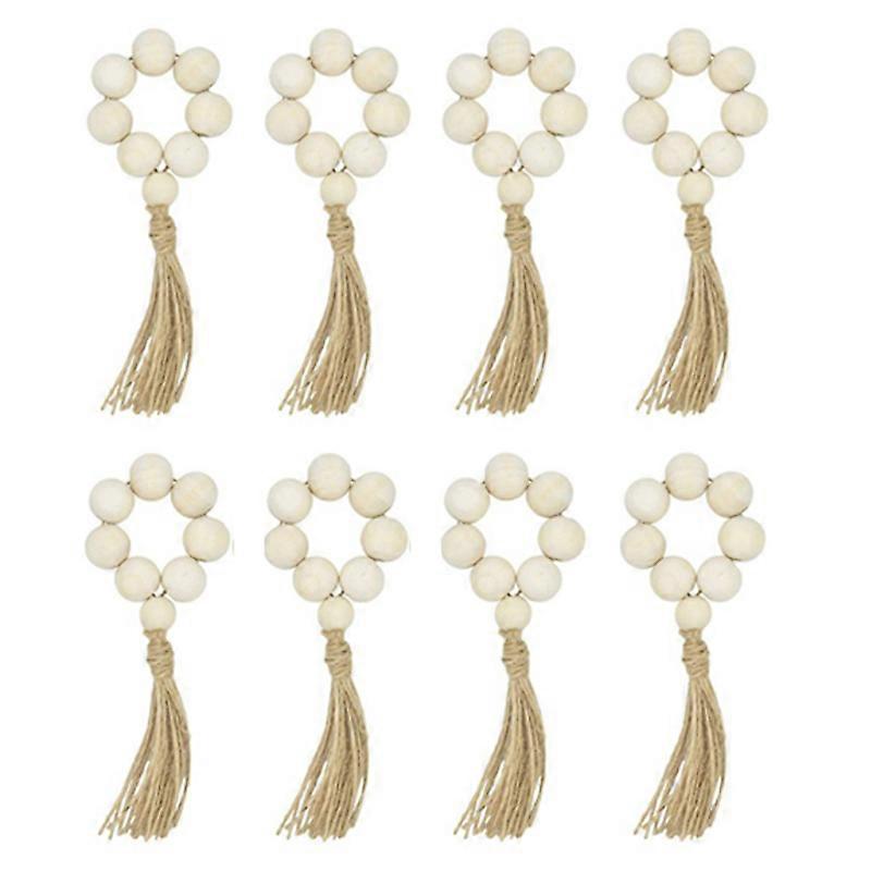 8Pcs Handmade Natural Wooden Bead Napkin Rings Holder for Weddings Party Home Hotel Decor Table Din