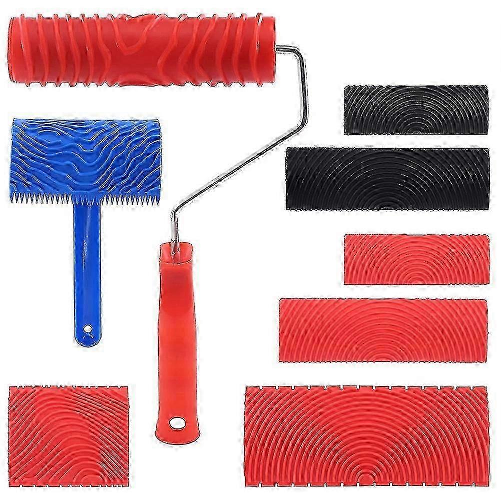 8 Pcs Wood Graining Painting Tool Set, Rubber Empaistic Grain Pattern Roller with Handle, for DIY Wall Room Decoration js