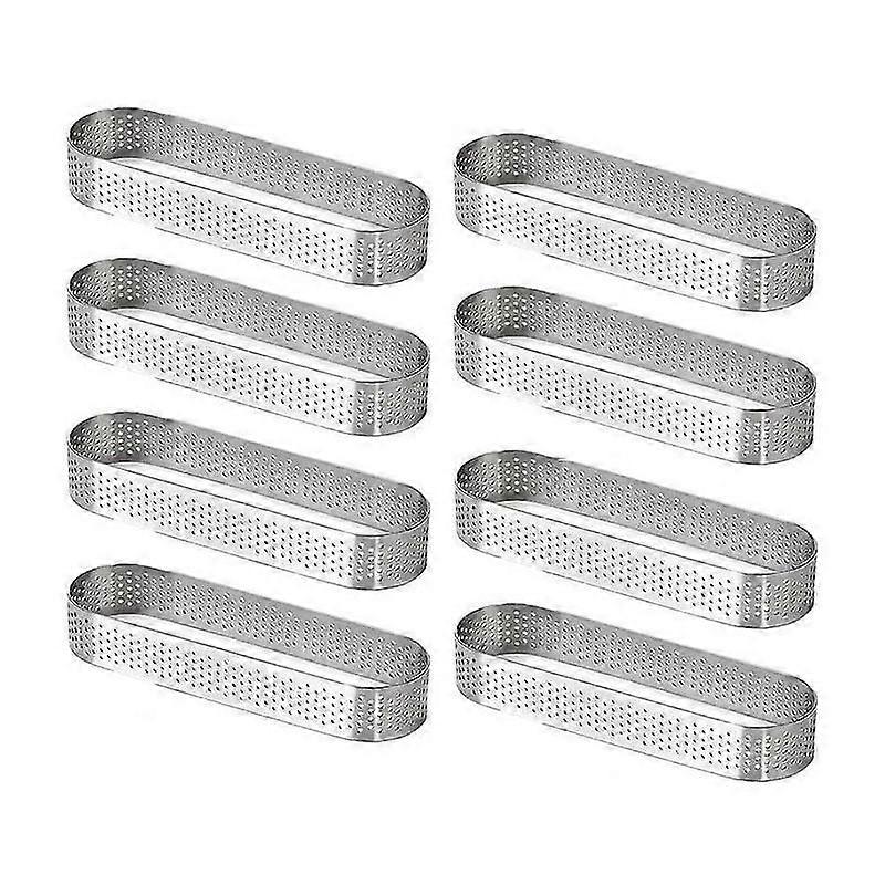8Pcs Oval Tartlet Molds,French Dessert Mousse Fruit Pie Tart Ring Quiche Cake Mold, Stainless Steel Tart Mousse Ring