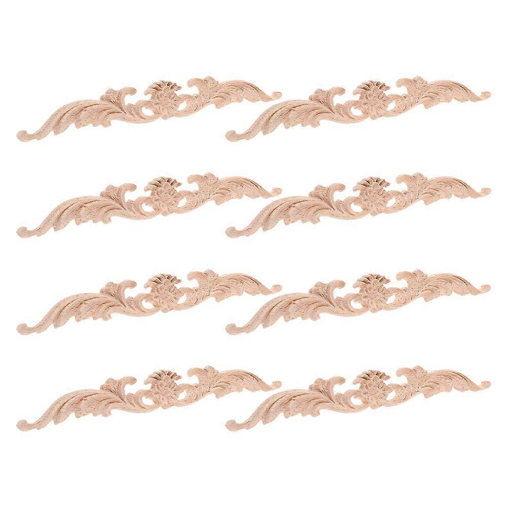 8pcs Decorative Carved Wood Onlay Appliques, Solid Unpainted Wooden Flower Decals for Wardrobe, Cabinet, Door, Bed Frame European Style Trim for