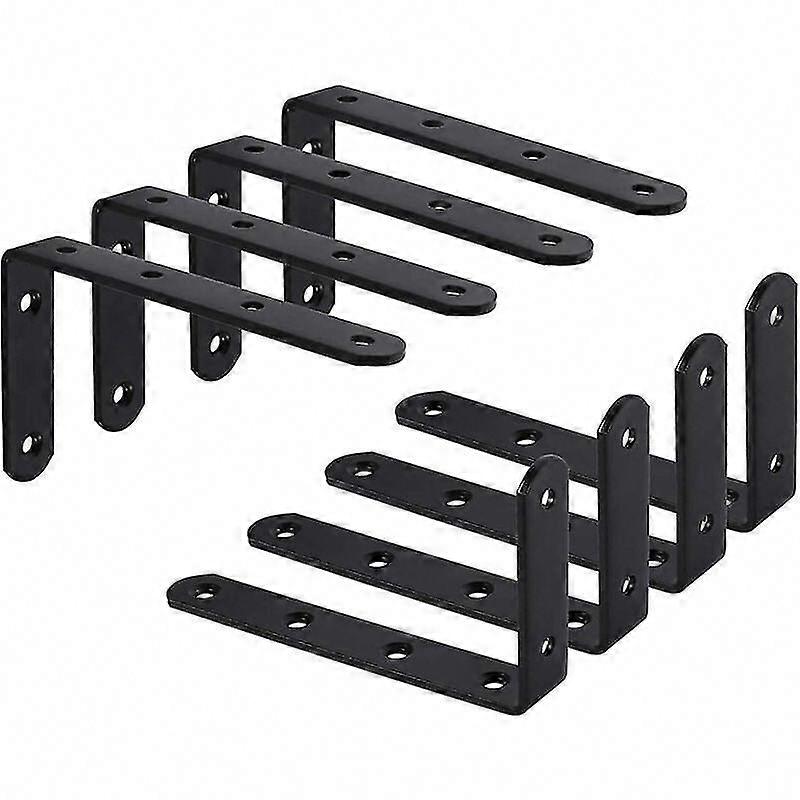 8Pcs Black Iron L-Shape Wall Shelf Bracket for Kitchen Bedroom Furniture Hanging Closet 125x75x3mm