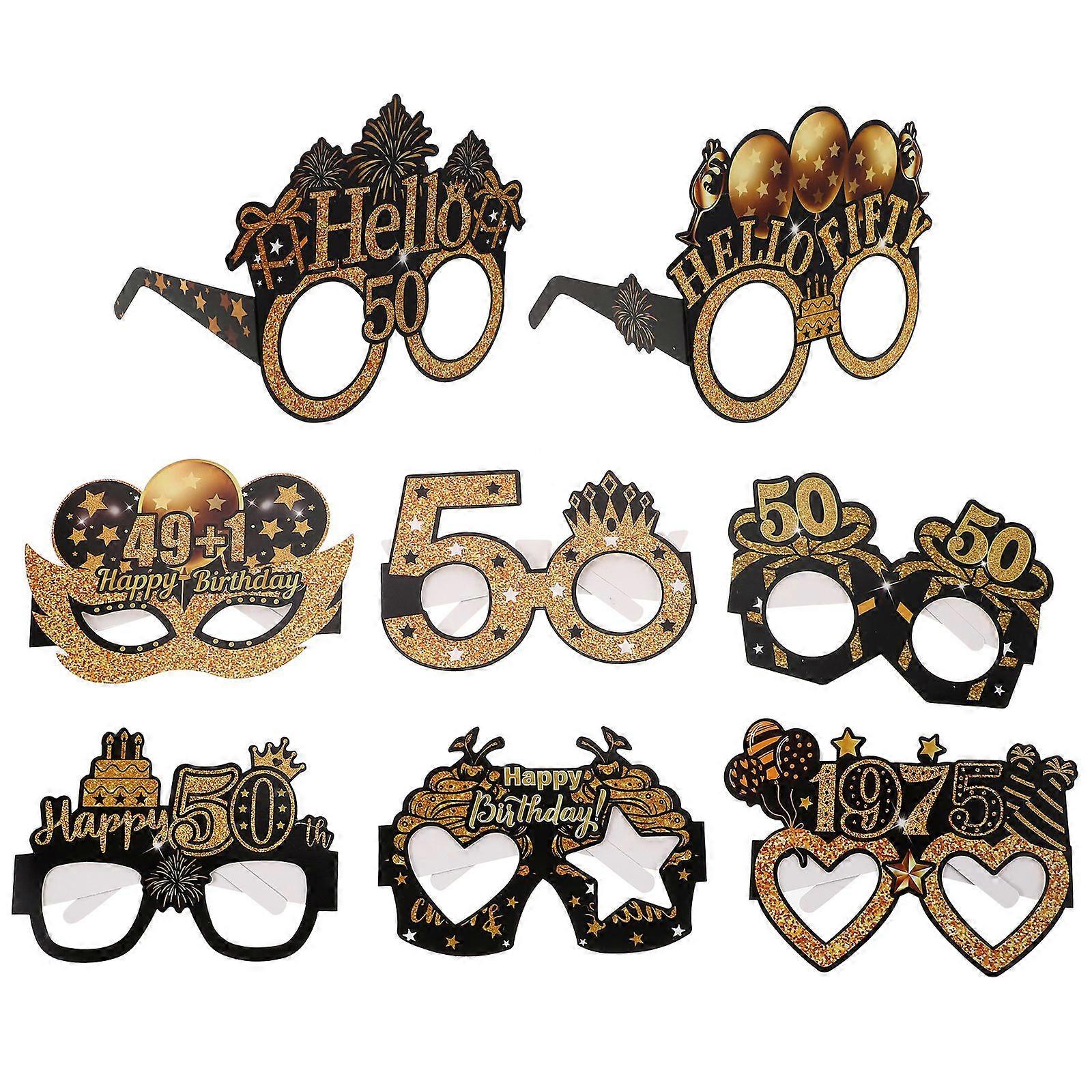 8pcs 50th Birthday Glasses: Funny Happy Birthday Party Glasses - Paper Eyeglasses Decorations Photo Booth Props For 50th Celebration