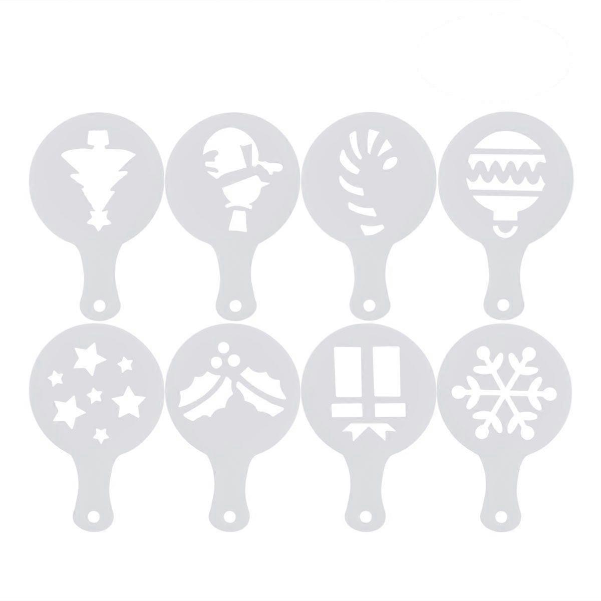 8 Pcs Creative Plastic Birthday Cake Spray Mold Decorating Screen Printing Film Coffee Tiramisu Spray Mode