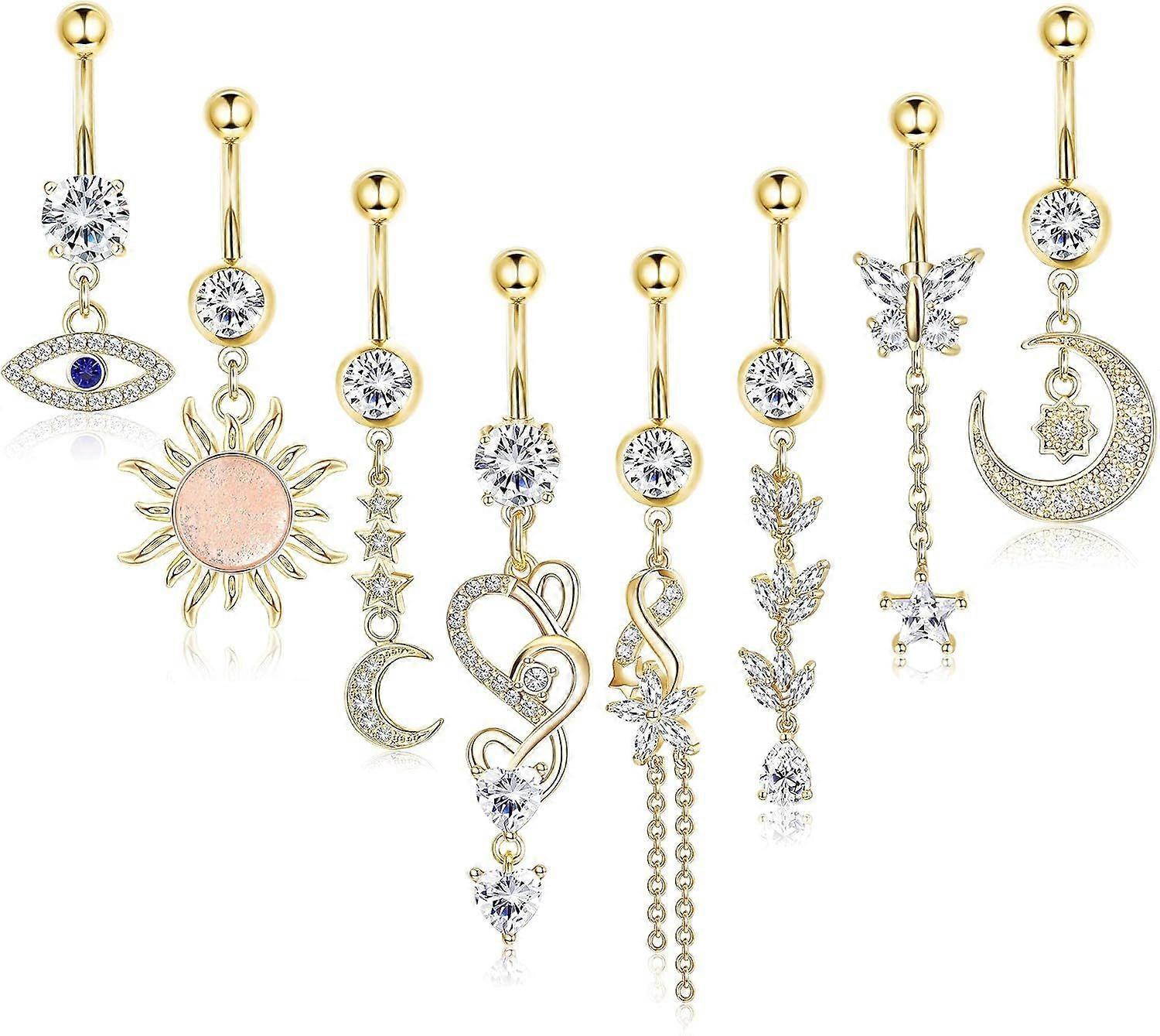 8Pcs Stainless Steel Dangle Belly Button Rings for Women Evil Eye CZ Navel Rings