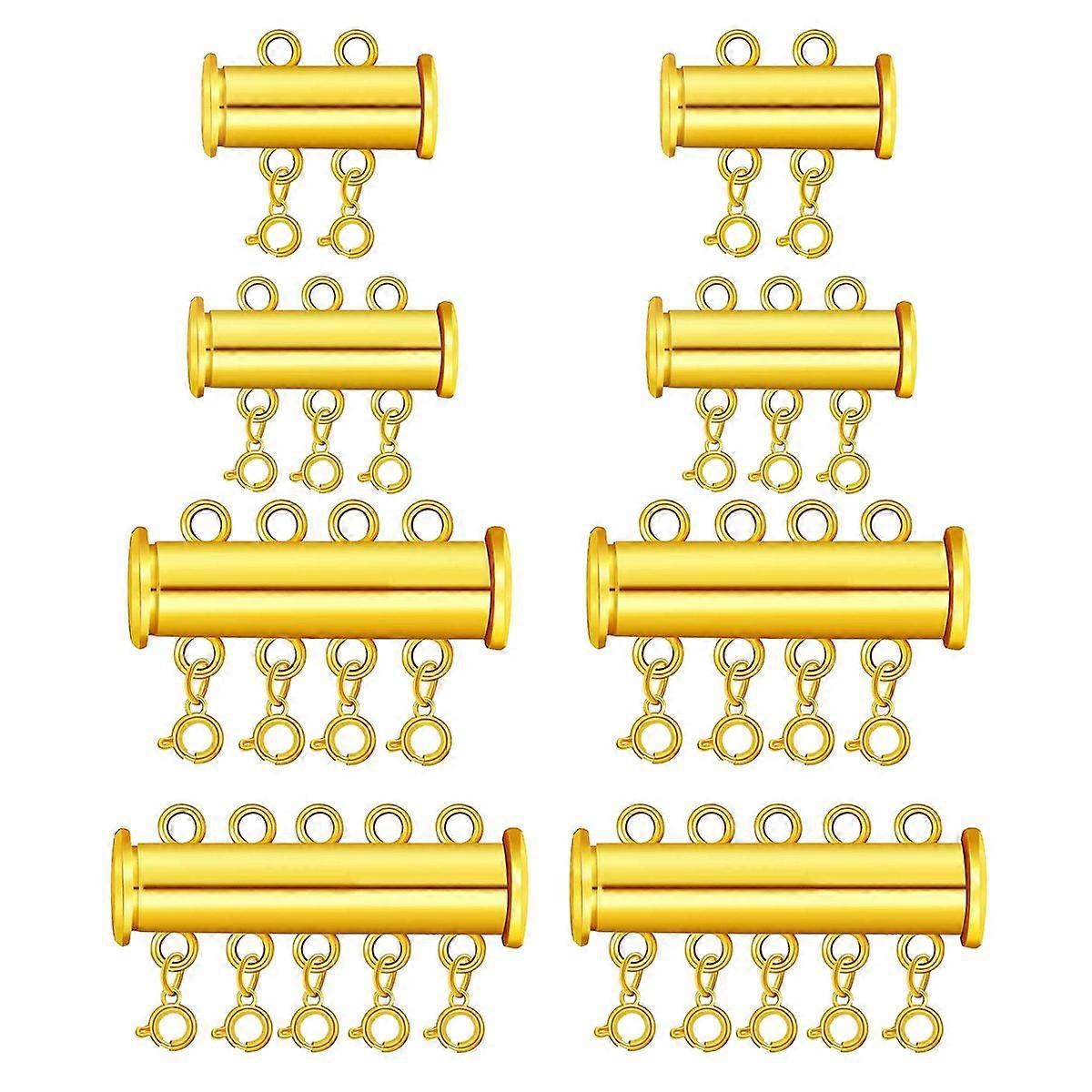 8Pcs Slide Lock Clasp Pearl Buckle Bracelet Necklace Connector Multi Strands Slide Tube Clasp Jewelry Layered Buckle DIY Jewelry Accessories (Golden)