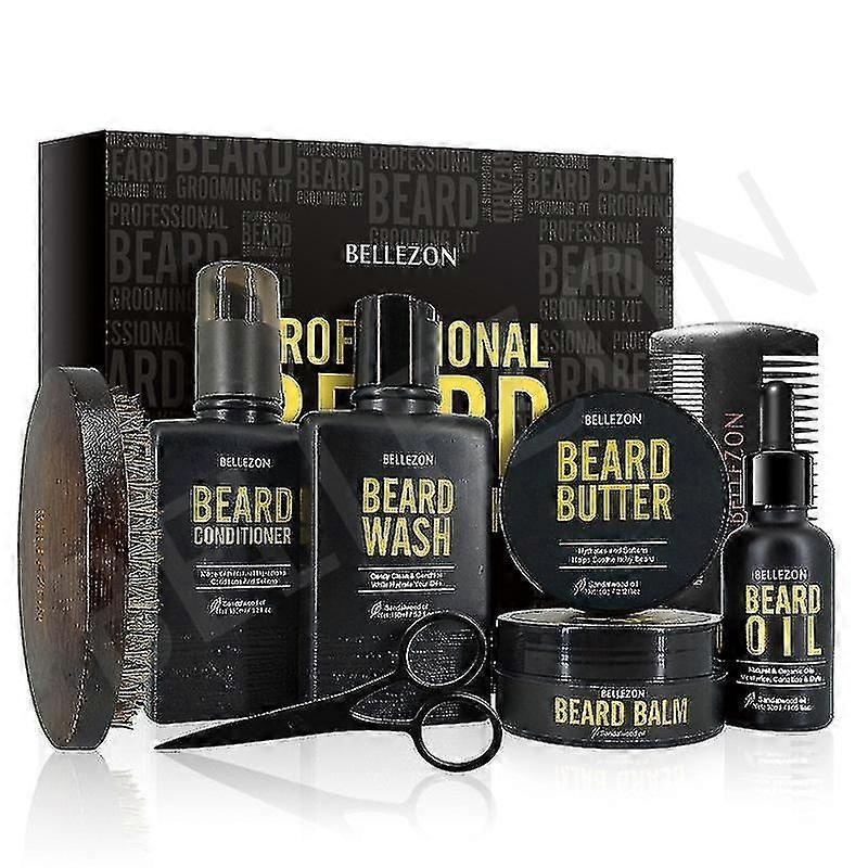 8pcs/set Beard Care Kit Men Beard Shaving Cream Aftershave Cleansing Nourishing Shaping Beard Growth