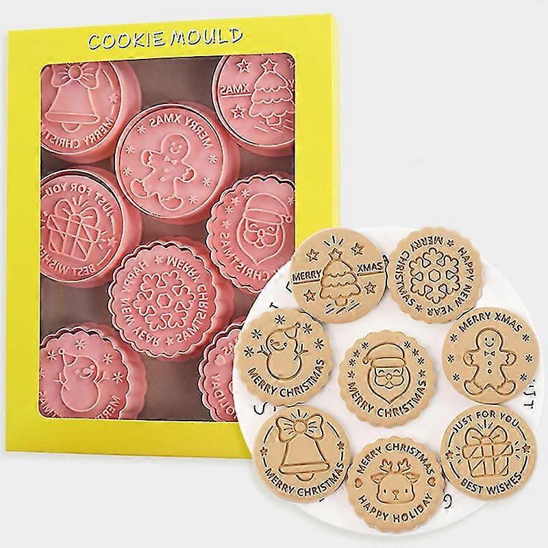 8 Pcs/set Cookie Cutters Plastic 3D Christmas Theme Cartoon Pressable Biscuit Mold Cookie Kitchen Baking Pastry Bakeware