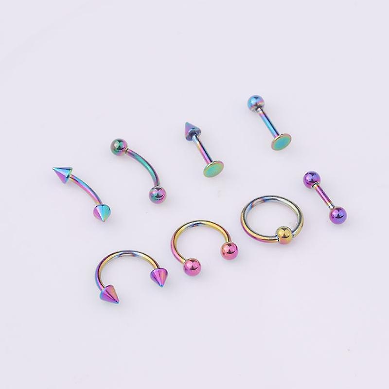 8Pcs/set Multifunctional Lip Ring Colorful Stainless Steel Cartilage Nose Nail Earring Piercing Jewelry
