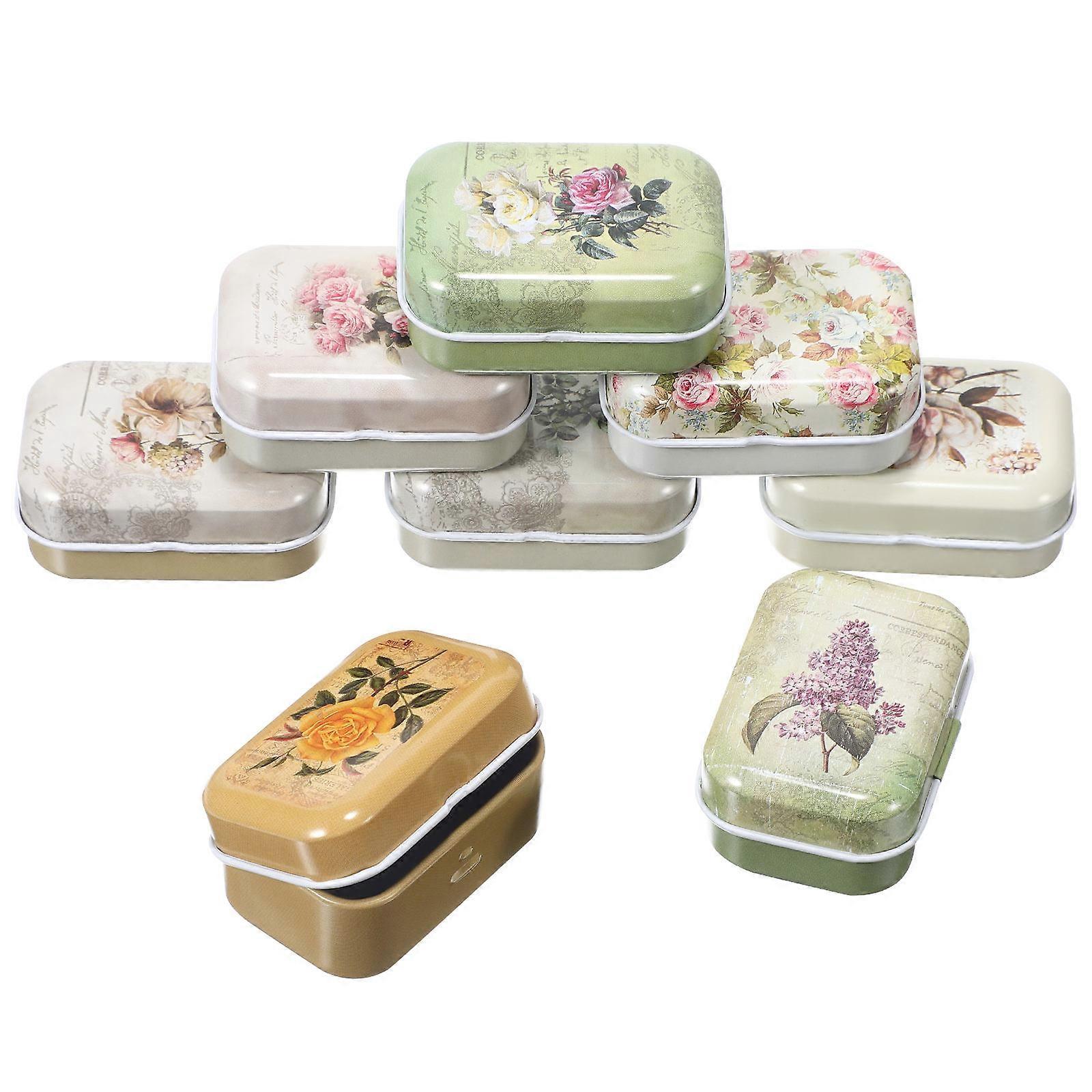 8 Pcs Tin Boxes Vintage Jewelry Box Trinket Box Small Jewelry Box With Lid Flower Organizer Box
